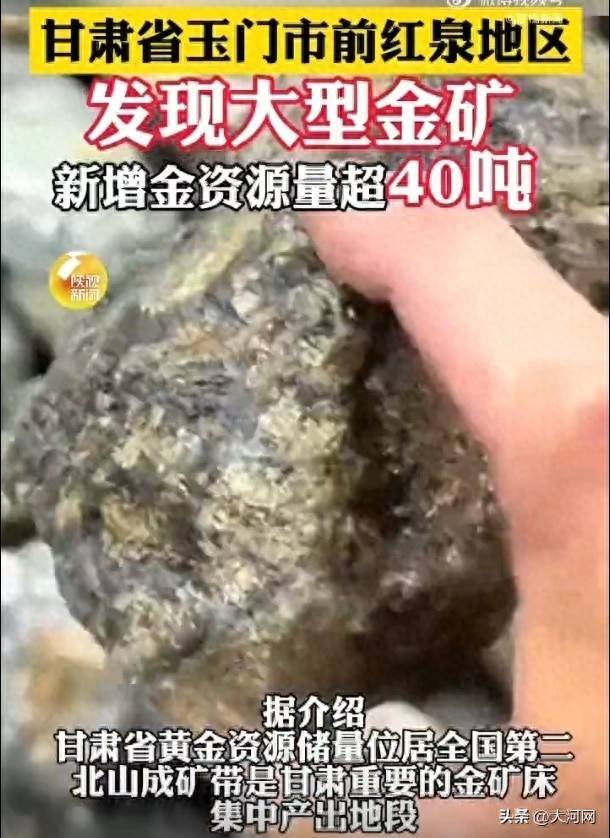 据甘肃省自然资源厅日前消息,甘肃省玉门市前红泉—黑山北滩地区新发现一处大型金矿,新增金资源量超40吨,规模相当于两个大型金矿的资源量。
