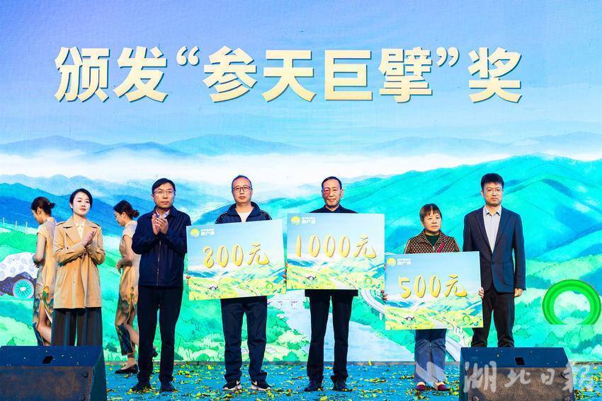 最受瞩目的“参天巨擘”颁奖环节,大屏上展示的《寻找树王》的短视频震撼全场,这些野生猕猴桃树,不仅是雾渡河镇野生种群“天然基因库”的鲜活见证,更是产业发展的“活化石”,凸显了原产地不可复制的资源优势。竞拍环节中,纯野生稀有软枣猕猴桃以小巧外形与浓郁口感彰显稀缺价值;树龄超百年的“树王”美人果,融合王昭君与雾渡河镇的历史渊源,集品质、故事与文化情感于一身,成为全场焦点。竞拍不仅拍出了原产地珍品的价值,更拍出了市场对雾渡河猕猴桃品质的高度认可。互动问答环节中,原产地历史、品种特色等知识的普及,搭配雾渡河玩偶IP的赠送,让原产地文化深植人心。