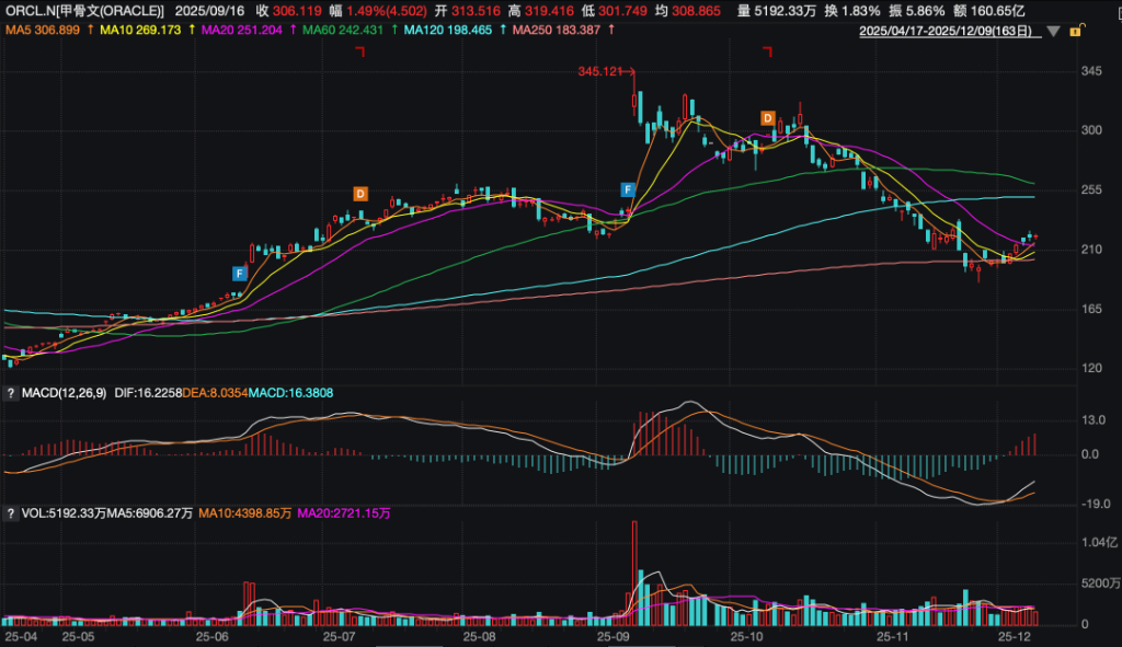 自9月10日股价创历史新高以来,甲骨文已累计下跌33%,反映出市场对AI相关概念公司的态度趋于审慎。包括甲骨文在内的多家科技企业,因激进的资本支出和业务合作中循环交易面临的风险,正面临投资者的信心拷问。